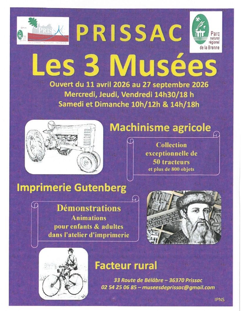 Le musée de Prissac vous accueille du 11 avril au 27 septembre.